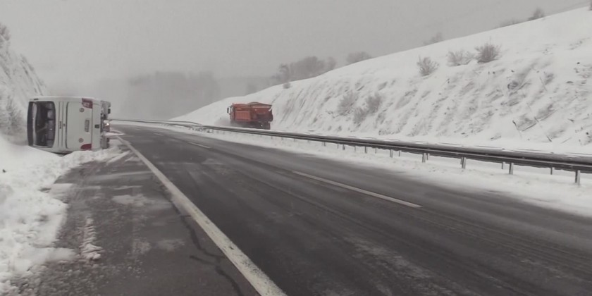 A bus overturned in Croatia, killing one person and injuring severalon Saturday on a highway in the west of the country. It was carrying nine people and the driver when it crashed.