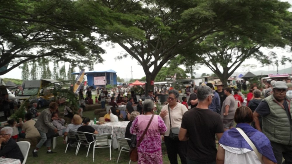 Hundreds of people attended New Caledonia's shrimp and deer festival in Bouloupari where an assortment of stalls offer deer meat, plants, and knives, among other things.