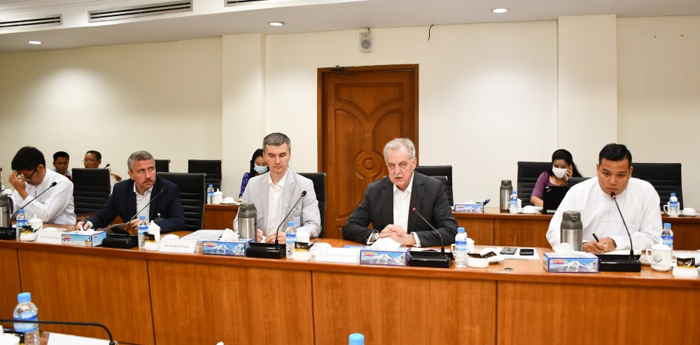 Then, Mr Grigoriev Evgeny Dmitrievich discussed cooperation between Russia and Myanmar in marine product industry, agricultural produce, and other export sectors, as well as the sectors to increase business activities. He invited Myanmar products to be displayed at the exhibition and trade fair, which will be held in St Petersburg in the winter, where products from 30 countries will be displayed.
