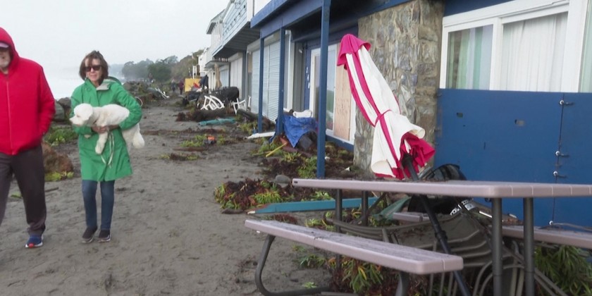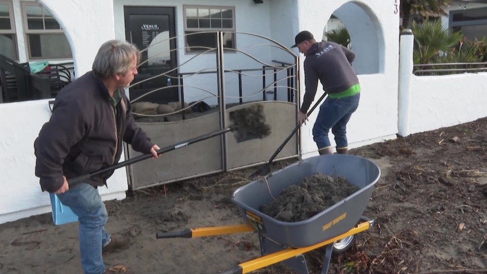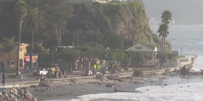 The cleanup along the Central California coast has begun, even as more storms are forecast over the weekend. Hurricane-force winds, surging surf and heavy rains from a powerful "atmospheric river" pounded the region, causing flooding.