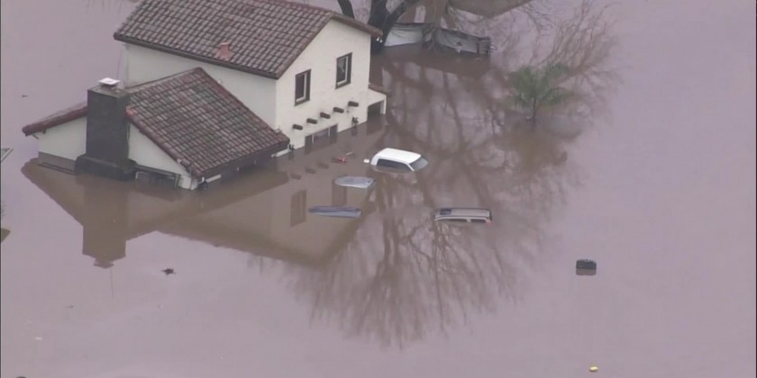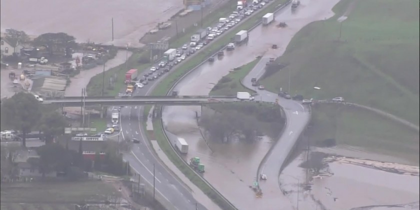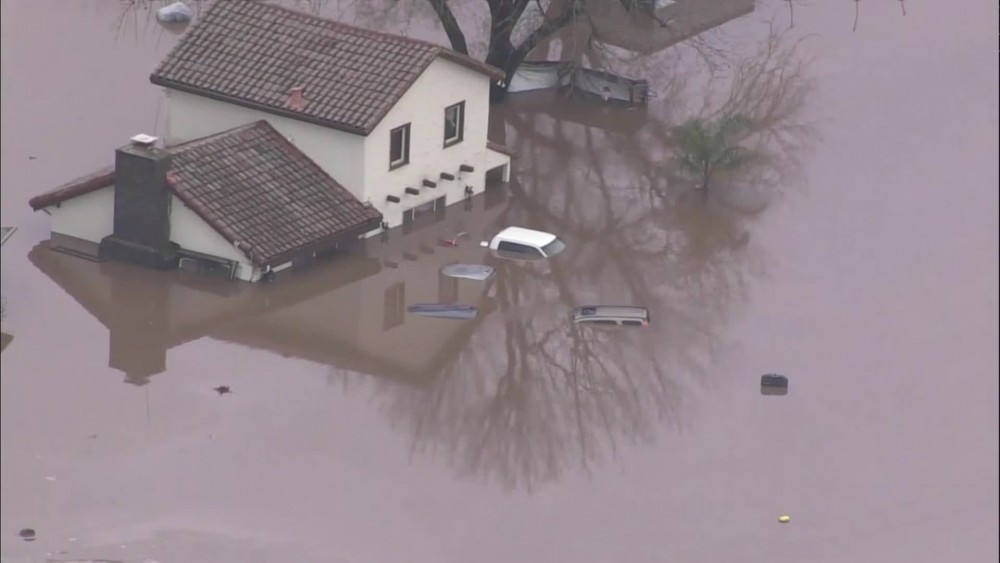 The town of Gilroy in Northern California was partly underwater after the latest storm. Parts of Highway 101 are also flooded, with some drivers driving through the floodwaters.
