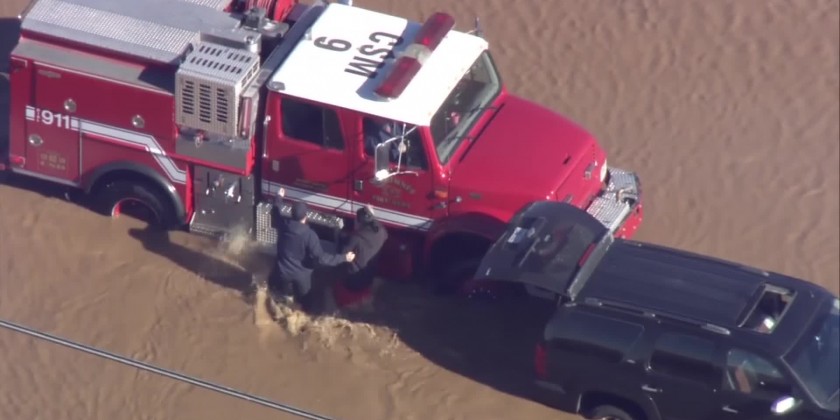 A weather phenomenon known as an "atmospheric river" dumped up to 5 inches of rain in the Sacramento Valley and up to a foot of snow in the mountains on Saturday.