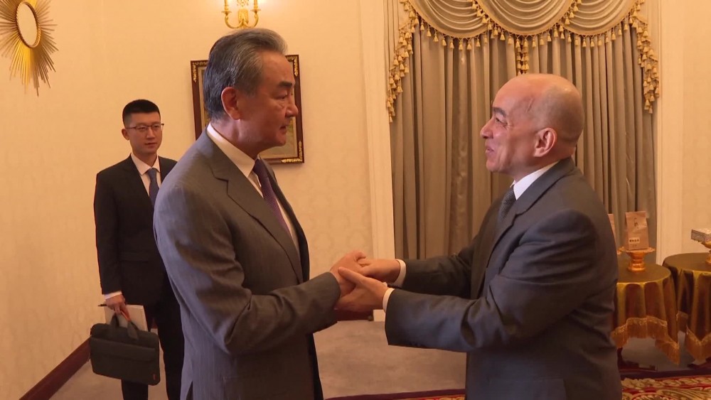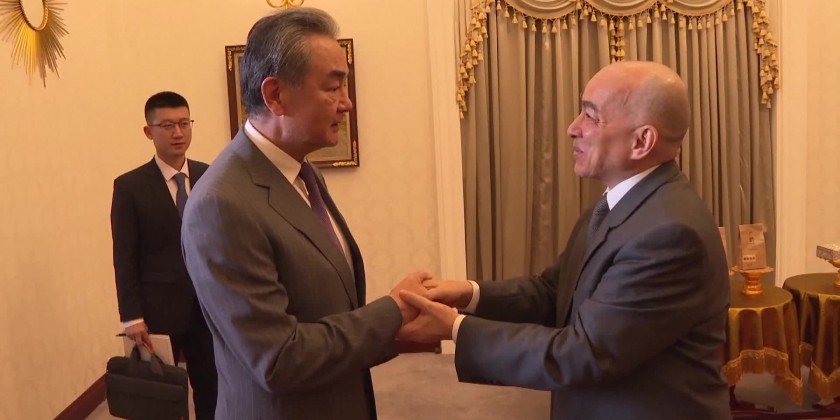 Chinese Foreign Minister Wang Yi met with Cambodian King Norodom Sihamoni in Phnom Penhon Sunday.