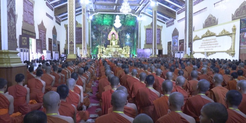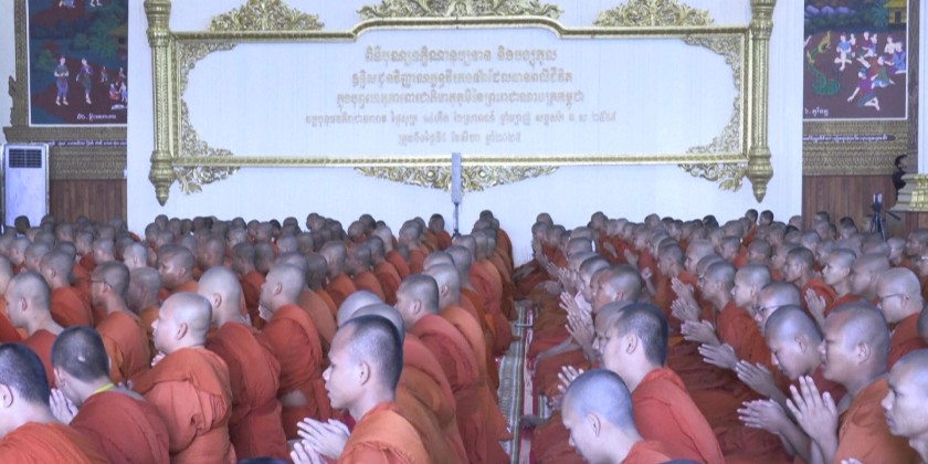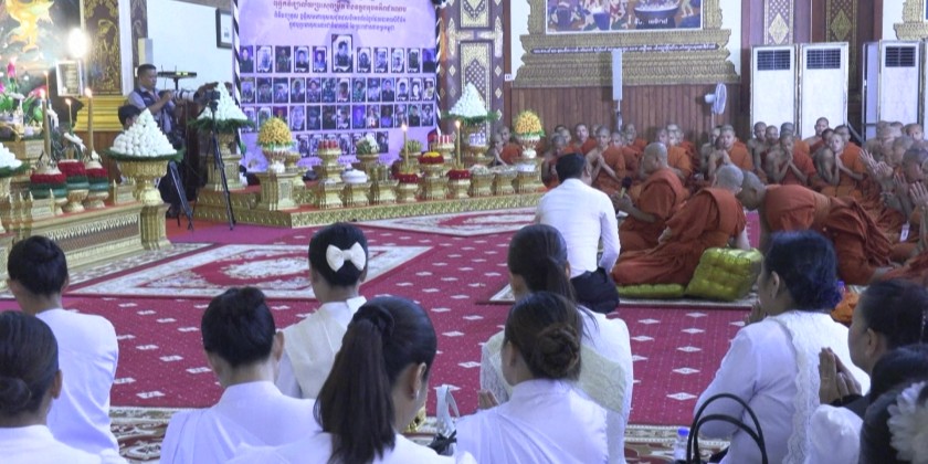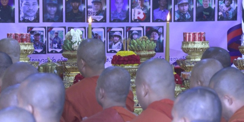 More than 1,000 Cambodian Buddhist monks attended a prayer ceremony for soldiers killed in border clashes on Friday. They briefly marched on the streets in capital Phnom Penh before gathering at a Buddhist temple. Pictures of the reportedly fallen soldiers were displayed at the temple.