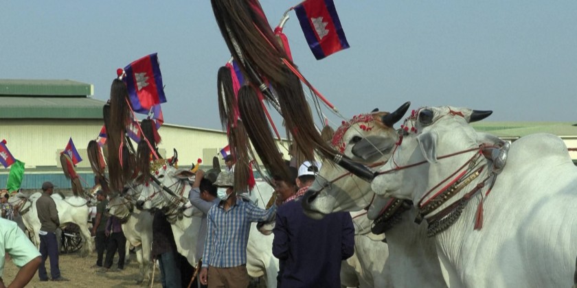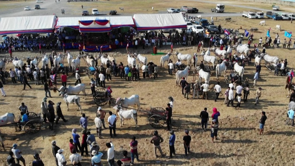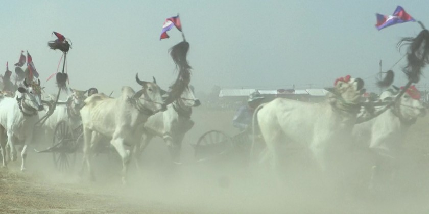 Villagers aboard Cambodian-flagged wooden carts ran their oxen at high speed on Sunday in an annual race to safeguard the centuries-old tradition as concerns mount over development encroaching on racing grounds.