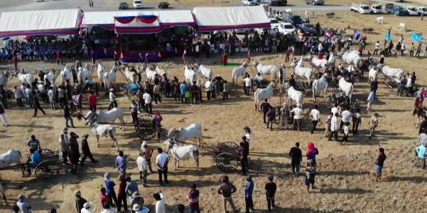 Despite scorching sun, hundreds of people flocked to see 46 pairs of oxen take part in the competition, which took place at an empty field in Kampong Speu province, west of capital Phnom Penh. The event is held every year to mark the end of the rice harvesting season and to welcome the Khmer New Year in mid-April.