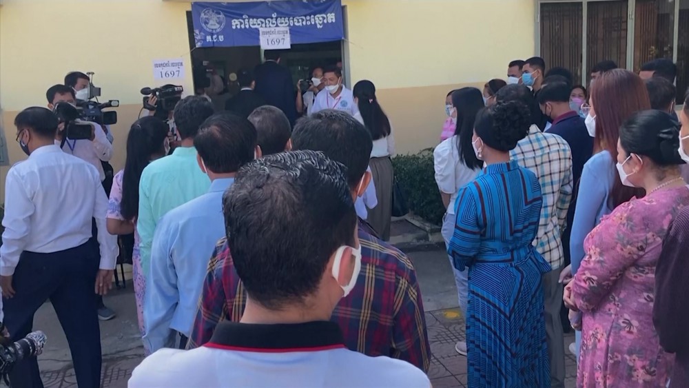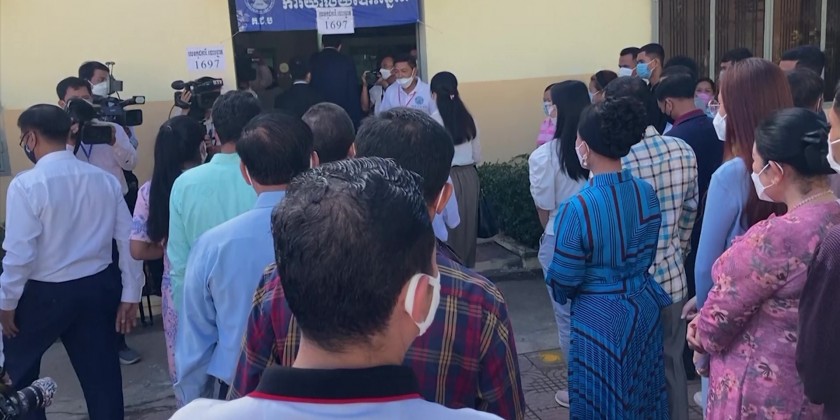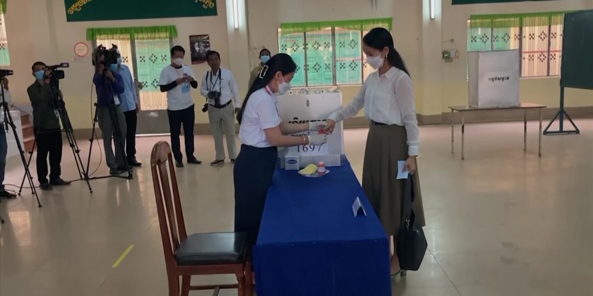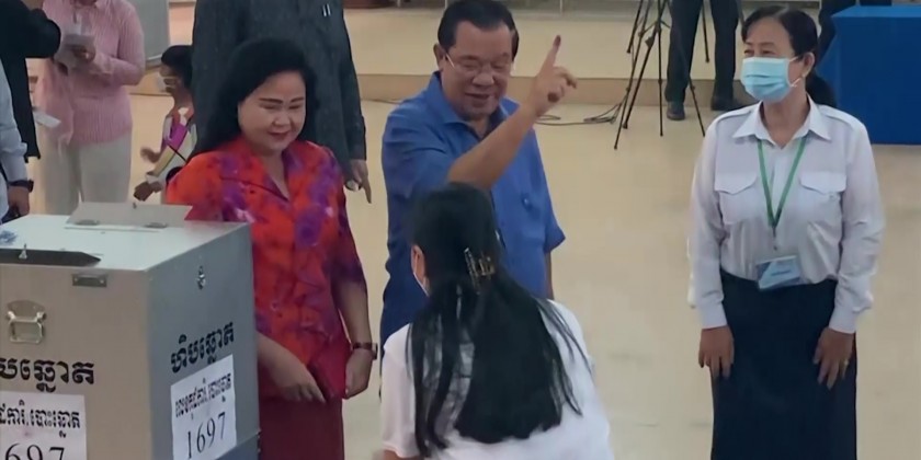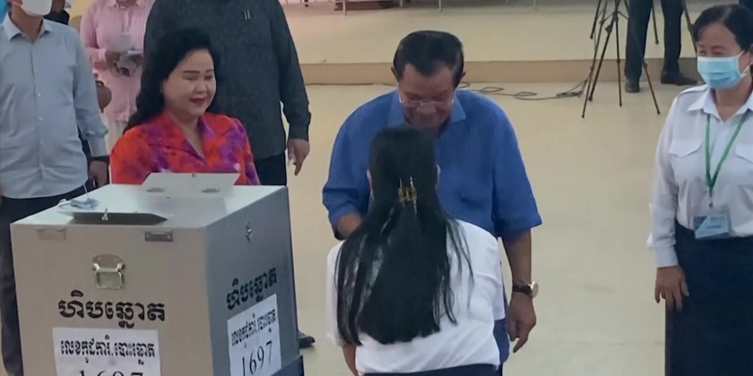 Prime Minister Hun Sen and his wife cast their ballots on Sunday morning in Kandal province near the capital, Phnom Penh. His party is the only one to field candidates nationwide in all 1,652 communes.