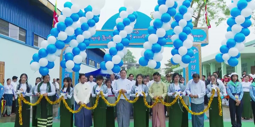First, Myanmar Youth Affairs Central Committee Secretary Deputy Minister for Sports and Youth Affairs U Zin Min Htet, Vice Chairman of Yangon Region Libraries Supervisory Committee U Maung Maung Oo, Chairman of Insein District Administrative Body, District Education Officer and a Township elder opened the event by cutting the ceremonial ribbon.