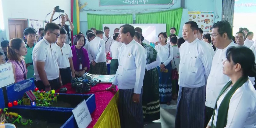 Next, the Region Chief Minister U Soe Thein, Deputy Minister, Region Ministers and officials viewed around the students’ contests and activities.