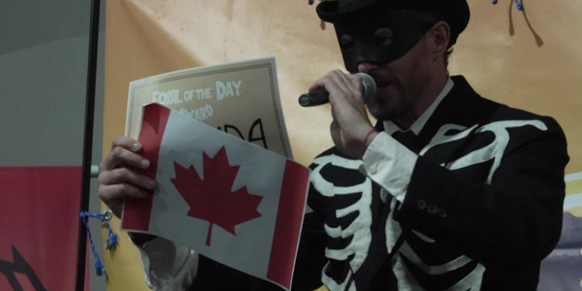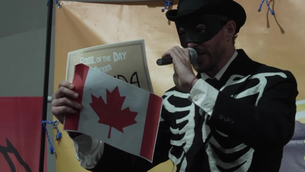 Canada received the Fossil of the Day award at the COP30 climate summit in Belem, Brazil. Adam Scott, executive director of Shift Action for Pension Wealth and Planet Health receiving the award on Canada’s behalf.