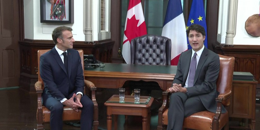 French President Emmanuel Macron and Canadian Prime Minister Justin Trudeau on Thursday expressed their shared vision, from working towards "open and decarbonized" economies, and promoting the French language, to calling for a ceasefire in Lebanon. The two nations also announced they would strengthen their defense partnership.