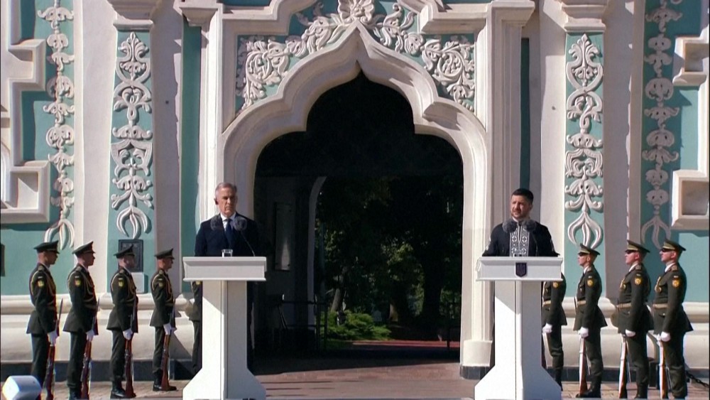 Canadian Prime Minister Mark Carney joined Ukraine President Volodymyr Zelensky on Sunday at a ceremony in Kyiv to celebrate the country's Independence Day.  Carney called for "a just and lasting peace for Ukraine". Zelensky thanked other world leaders including Trump, Chinese President Xi Jinping, King Charles and the pope for sending messages to mark the occasion.