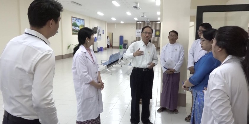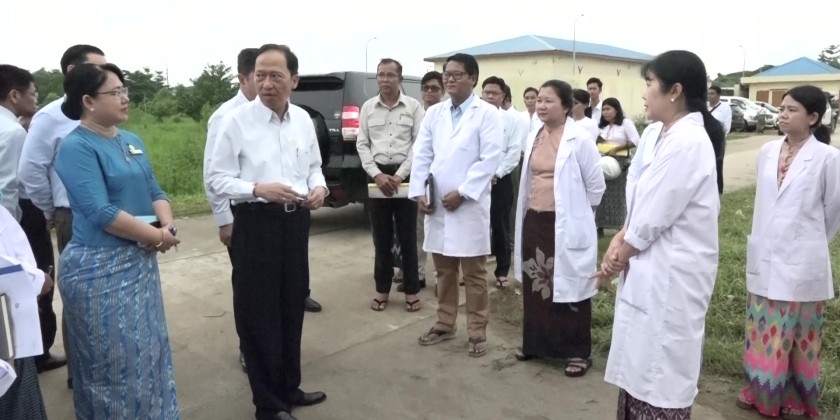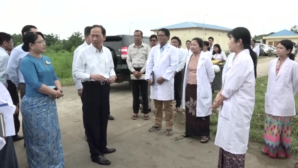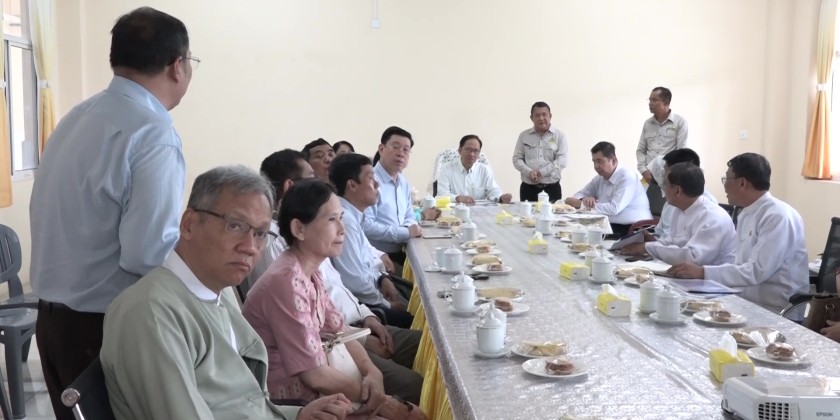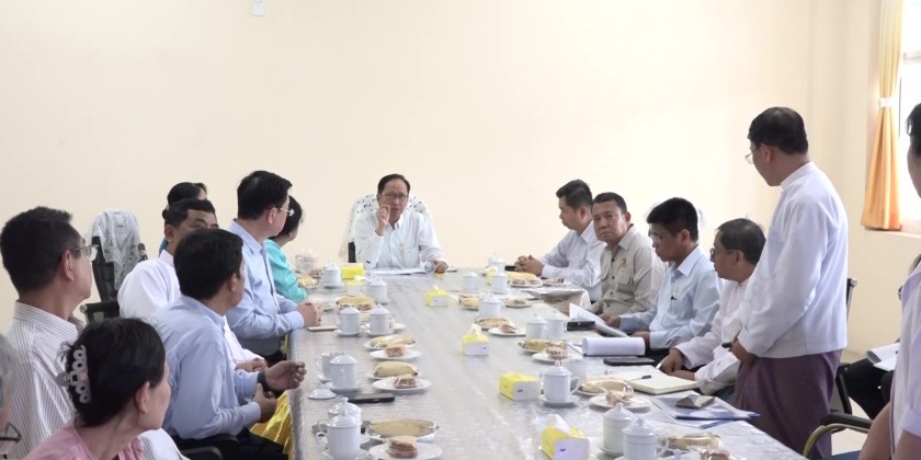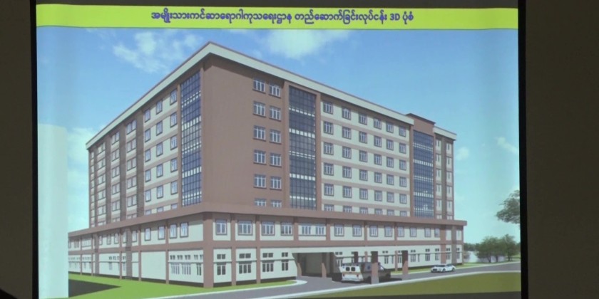 The Union Minister then attended a meeting held in the conference room of the five-story treatment building, where Chief Engineer U Ko Ko Aye from the Department of Building under the Ministry of Construction gave a presentation on the progress of the project and future plans to make the hospital's surroundings pleasant and attractive.