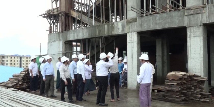 Union Minister for Health, Professor Dr. Thet Khaing Win, accompanied by relevant officials, visited the construction site of the National Cancer Treatment Center located in Dagon Seikkan Township, Yangon Region, on the afternoon of July 26.
