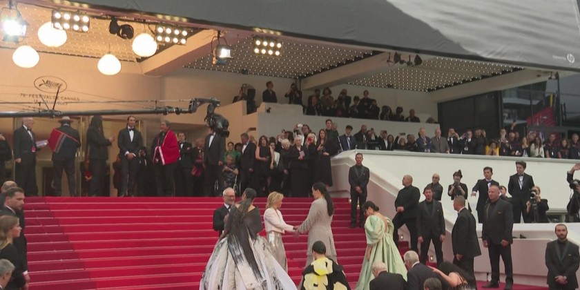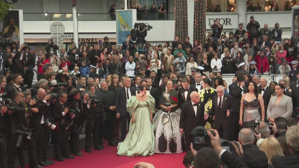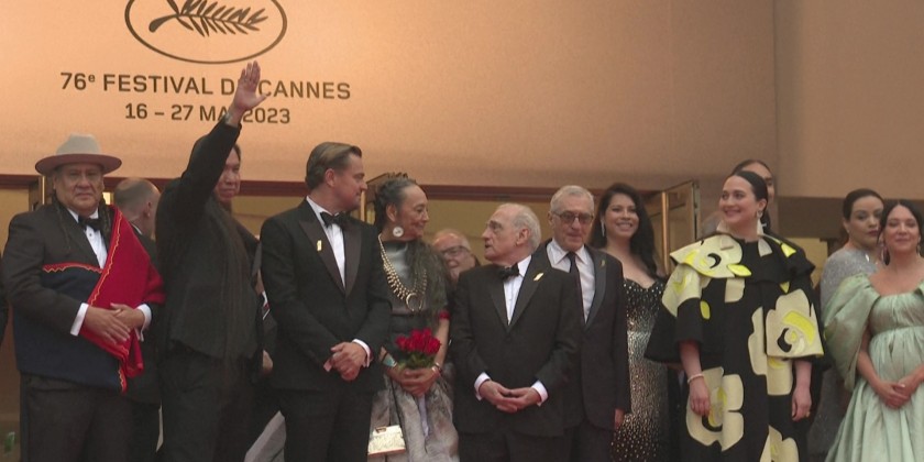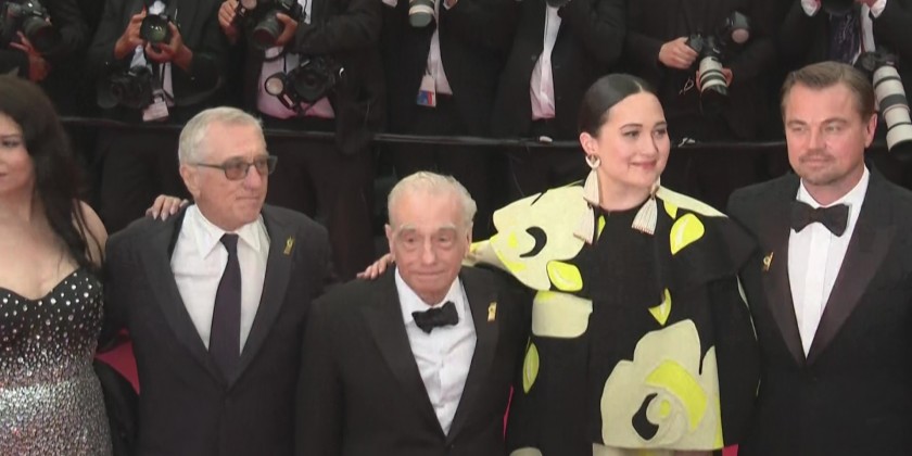 Martin Scorsese and Robert De Niro reunite on the Cannes red carpet for "Killers of the Flower Moon", which is playing Out of Competition. Walking out onto the Rolling Stones' "Paint it Black", Scorsese and De Niro were joined by co-stars Leonardo DiCaprio, Lily Gladstone and Jesse Plemmons.