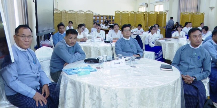 Union Minister Dr. Soe Win delivered the opening address. In his opening address, the Union Minister stated that this training course has been organized with the objectives of enhancing the leadership and management skills of mid-level officers serving in the Disaster Management Department, enabling them to understand and proficiently carry out financial procedures, ensuring their work is conducted in accordance with established laws, regulations, procedures, and directives, and enabling them to systematically manage the warehouses that have been opened to provide timely assistance to disaster victims, among other goals.