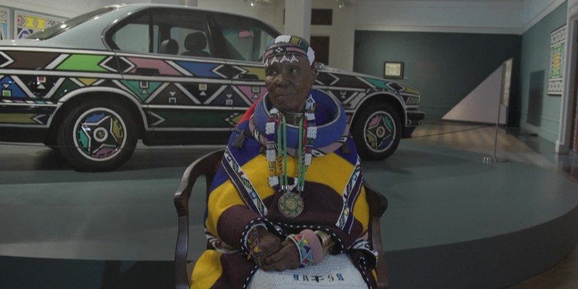The exhibition follows the 88-year-old painter and mural artist's unusual trajectory from rural South Africa to global acclaim. With no formal art training, she earned an international reputation with works referencing her Ndebele heritage using skills passed down for generations. Mahlangu, the first African artist to be commissioned to paint a BMW Art Car in colorful shapes, painted vibrant geometric works based on traditional Ndebele designs.