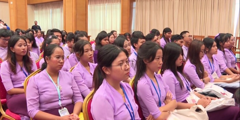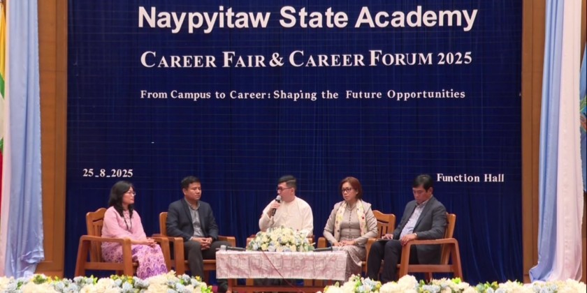 Union Minister for Education Dr. Chaw Chaw Sein delivered a speech at the opening ceremony of the first Career Fair & Career Forum 2025 held at the main building of the Naypyitaw State Academy on August 25.