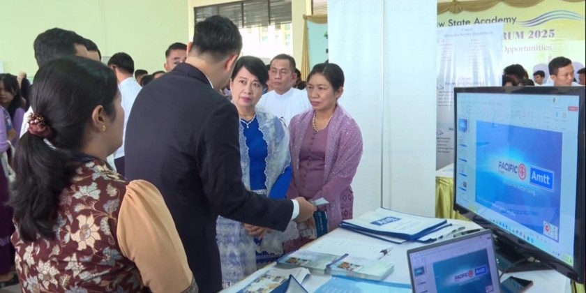 The first Career Fair & Career Forum 2025 featured more than 20 booths, including from the Ministry of Foreign Affairs, trade companies, banks, hotels and tourism services, and educational services, as well as businesses specializing in laboratory and scientific equipment and educational supplies.