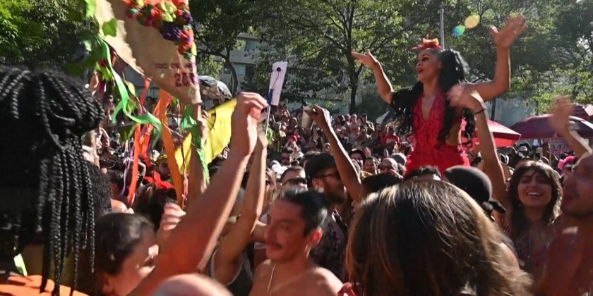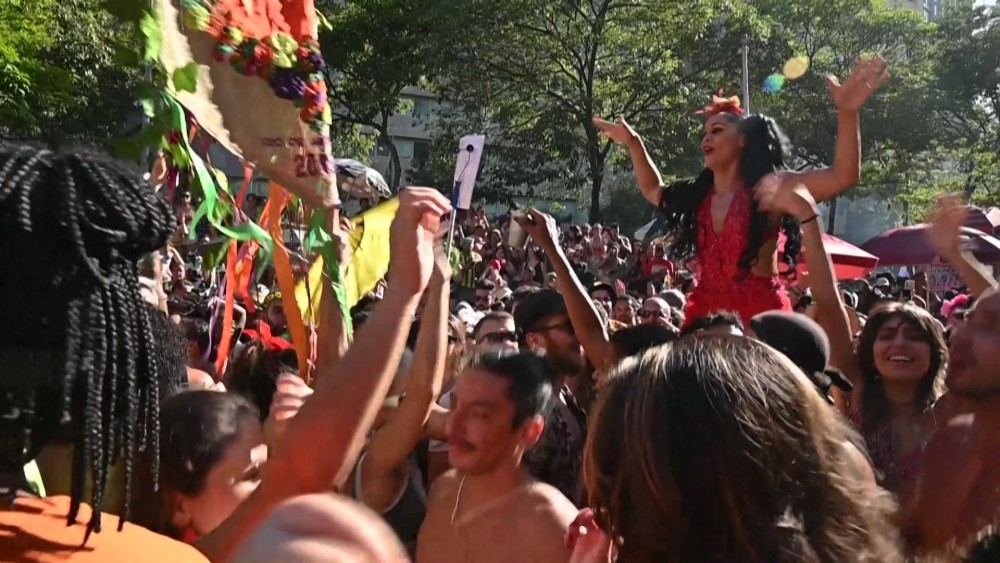 People danced and threw glitter at one of the epic street parties known as "blocos" that swarm Brazil's Rio de Janeiro ahead of the official opening of the world's biggest carnival.
