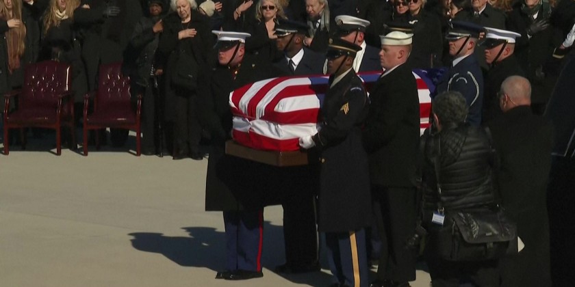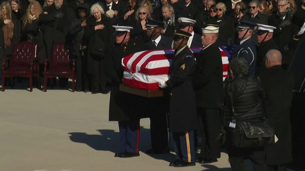 The body of former US President Jimmy Carter is carried from the Jimmy Carter Presidential Library and Museum after lying in repose for four days to allow mourners to pay their respects.