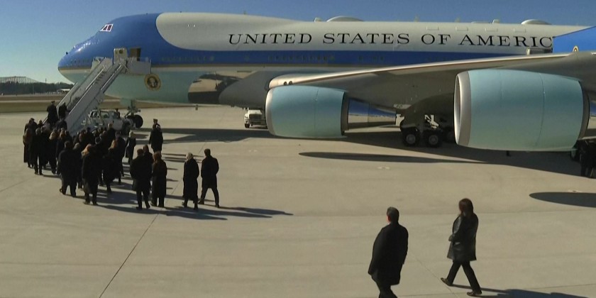 The flag-draped casket of the former president is transferred to Washington, DC, aboard Special Air Mission 39, where it will lie in state at the Capitol until the burial ceremony on Thursday. Carter passed away on December 29, aged 100, in his hometown of Plains, Georgia.