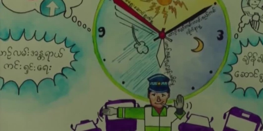 The competition was organized by the Yangon Region Government in commemoration of the Diamond Jubilee Independence Day. The event was held with the aim for raising awareness on traffic and road safety among the students and turning out outstanding students in the painting and cartoon arts.