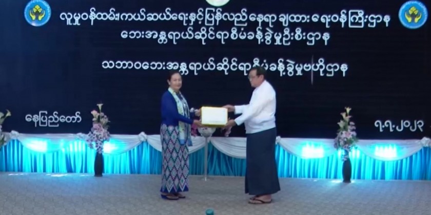 Afterwards, the Foreign Affairs deputy minister presented over 133.92. million Kyats and medicines worth 29.849 million Kyats to the Union minister for Social Welfare, Relief and Resettlement and she returned the certificate of honour.