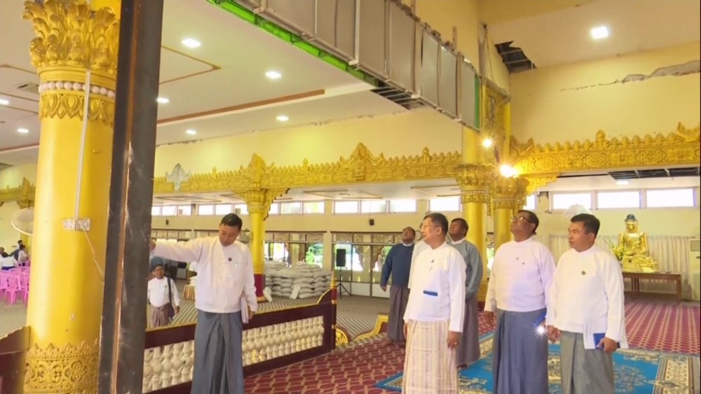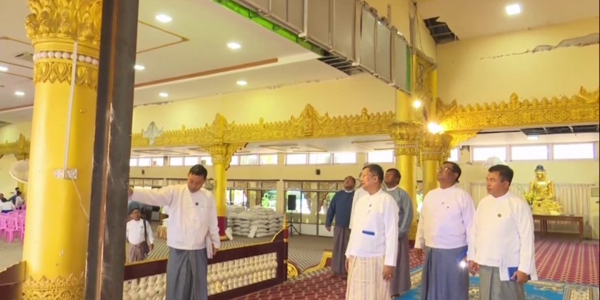 Union Minister for Religious Affairs and Culture U Tin Oo Lwin, accompanied by officials, on August 18, inspected the damage caused by the Mandalay earthquake on March 28.