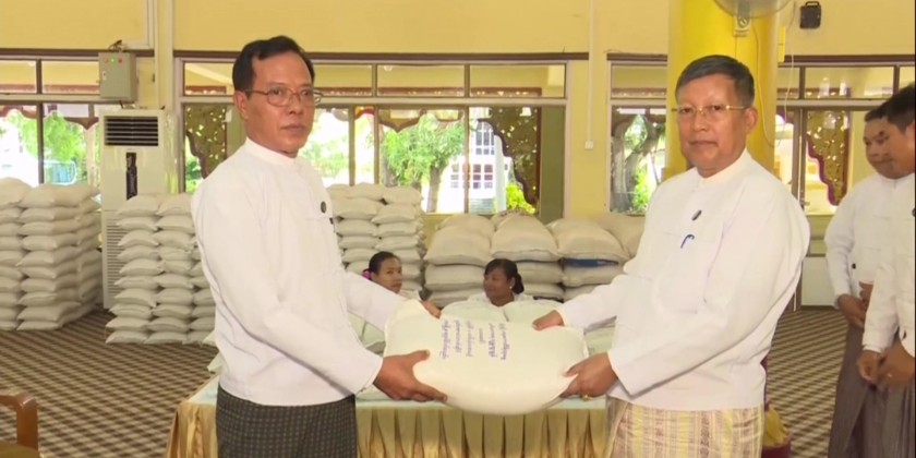The Union Minister then met with civil servants working in the Mandalay Region and the Sagaing District and Township areas. He gave a speech and provided each of the 588 personnel with a 6-pyi bag of rice.