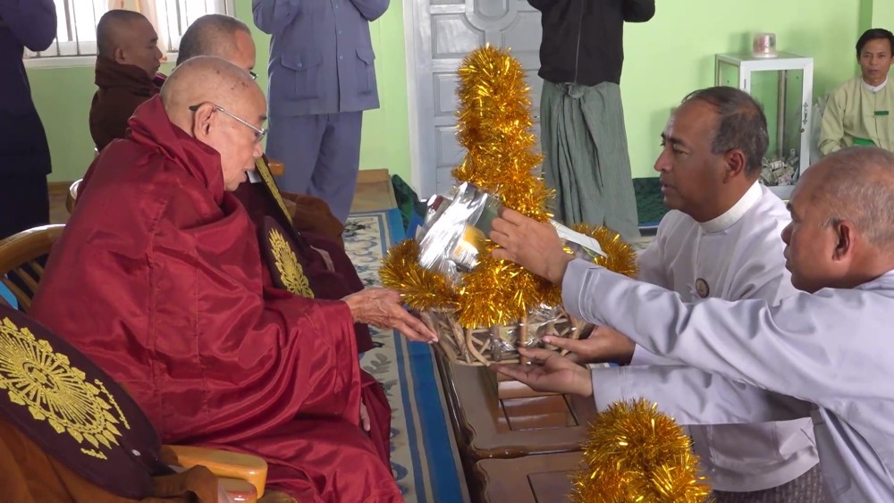 After that, the attendees listened to a sermon delivered by the chairman Sayadaw of the Shan State Sangha Nayaka Committee, the presiding Sayadaw of Thein Taung Pariyatti Monastery in Taunggyi. They then shared the merits gained and concluded the ceremony.