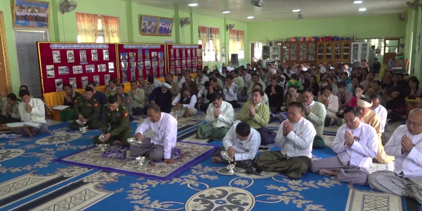 The Shan State Chief Minister, Commander of East Command, and distinguished guests observed the Five Precepts administered by presiding Sayadaw of Sun Lun Gu Meditation Center in Taunggyi Bhaddanta Aggadhammabhivamsa, and took the Paritta Suttas recited by the members of Sangha.
