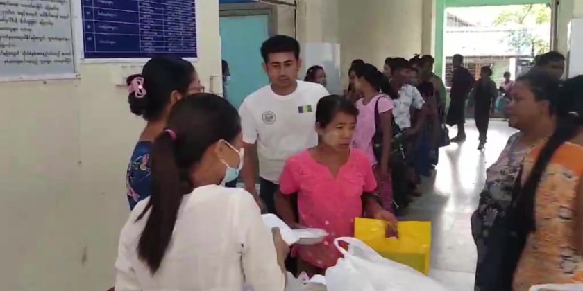 In the evening, donation of 4,700 boxes of Indian-style rice and fried anchovies were made in SayTaMar IDP camp, KhaungDokeKar IDP camp, BuMay Village and OhnTaPin Ward.