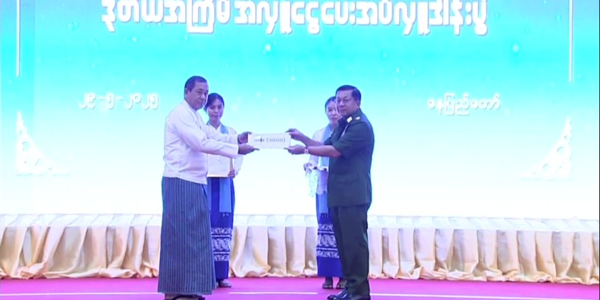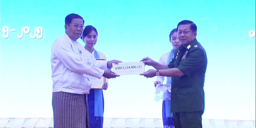 Next, the donations were made and honorary certificates were presented to the donors in return. A total of 131.53 billion kyat and over 2.3 million US dollar cash assistance was received during the ceremony. These donated amounted also included for the construction of 51 four-apartments 4 storey buildings for the earthquake affected communities.