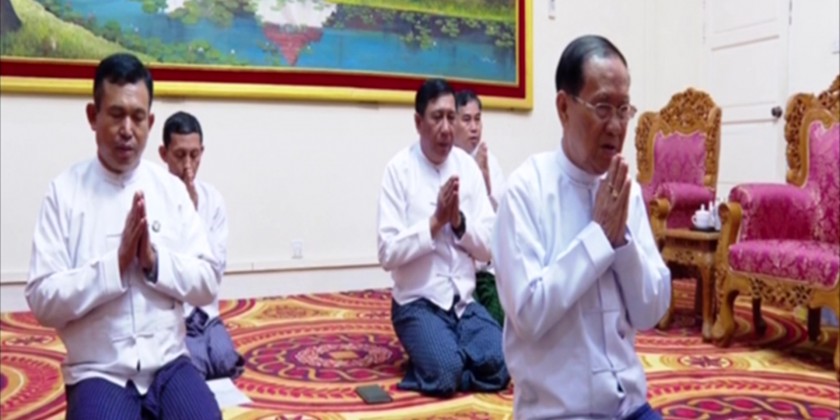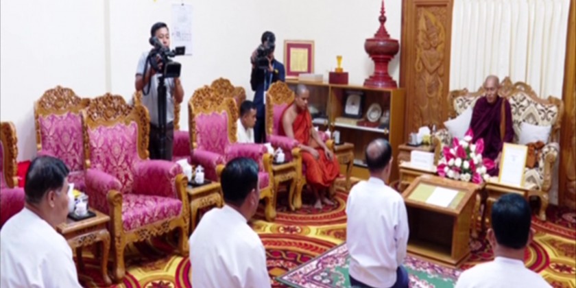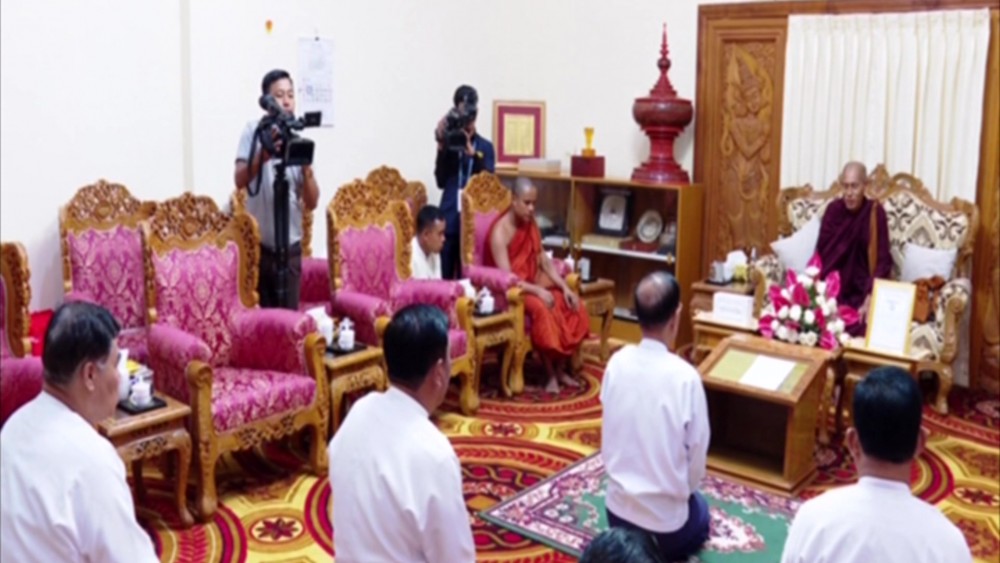 A ceremony to donate cash for missionary centers under the Ministry of Religious Affairs and Culture by the Township Sangha Nayaka Committee Chairman Sayadaw Buddhanta Kawvida from Tetkathila Zeyatheikdi Pahtan monastery in Dagon Myothit East Township of Yangon Region was held at the Ministry of Religious Affairs and Culture in Nay Pyi Taw on Monday.