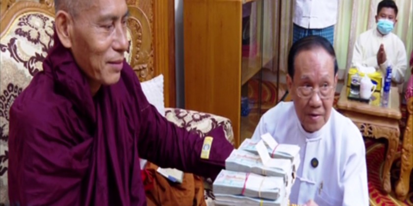 Afterwards, Sayadaw Buddhanta Kawvida presented 10.8 million kyats to the Union Minister for missionary centers and the Union Minister gave in turn certificate of honour.