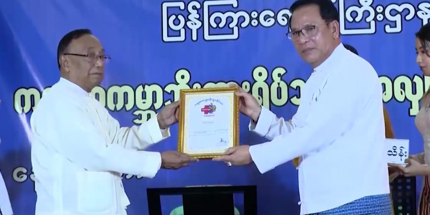 Then, the Union Minister handed over the donations of 5 million Kyats for the Karuna Kabar Home for the Aged, 900,000 Kyats which is expenditure for a day long meal donation, MRTV DTH satellite dish and DVB T2 set top boxes and an in-charge of the Karuna Kabar Home for the Aged Major Thaung Myint (Retired) accepted and returned certificate of honor and expressed words of thanks for the donation.