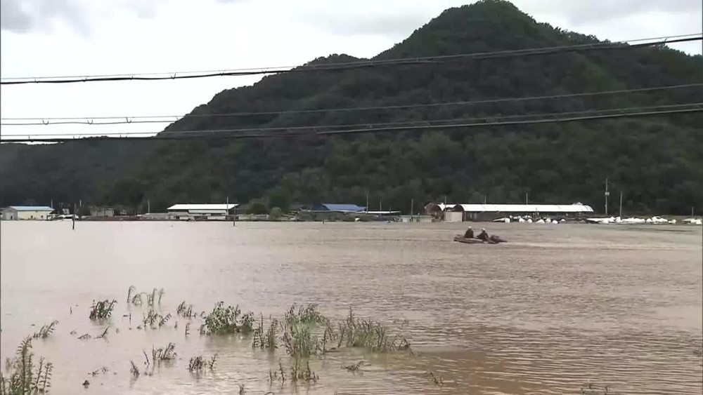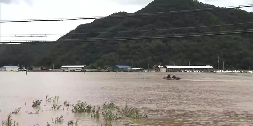 This village in Gunwi-gun County, Daegu, became submerged at around Thursday noon. A levee where three streams join collapsed in a matter of seconds as the streams overflowed due to some 100mm of rain. Most of the ten households in the village had been evacuated early on, but a 67-year-old man was swept away by the current.