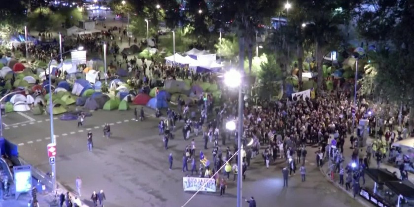 About 200 protesters marched through the streets of Barcelona on Saturday to call for independence and denounce action by both the Spanish and Catalan governments. The peaceful demonstrators marched to Sant Jaume Square. In that place, the Catalan government headquarters are located and demonstrators set fire to an effigy of Catalan Interior Affairs chief.
