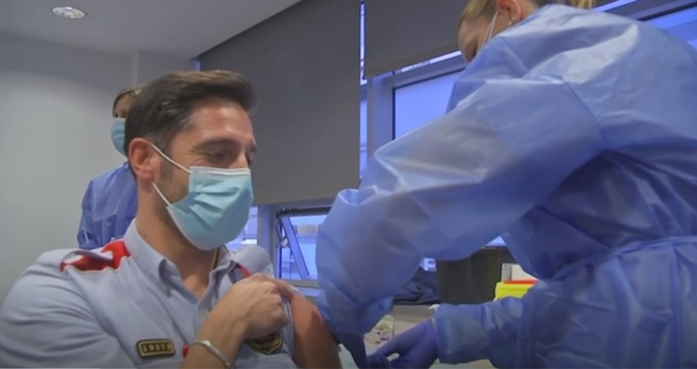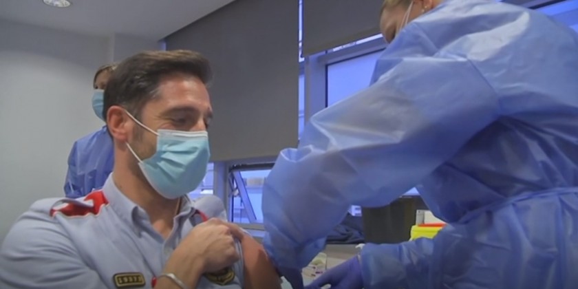 Spain began administering COVID-19 vaccines to essential workers on Wednesday. In the northeastern region of Catalonia, officers from the regional police force, Mossos D'Esquadra, were administered the first dose of the Oxford-AstraZeneca vaccine.