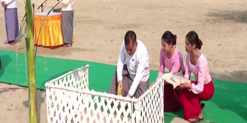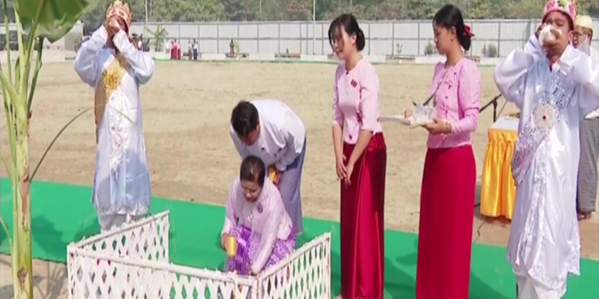 At the auspicious time, the CBM governor Daw Than Than Swe drove the stake and the Chief Minister U Maung Ko and the special guests designated for the driving stakes drove the stakes each and sprinkled with the scented water.