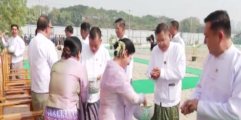 The ceremony of stake driving for the new building of Central Bank of Myanmar (Mandalay Branch) was held at Hsin Phyu Kan Kwin (Plot No. 409), ChanMyaThaZi (South) Ward, ChanMyaThaZi Township, Mandalay Region in the morning on Friday.