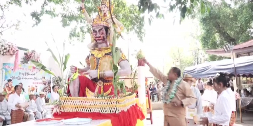 Gon Shan ethnic people hold this ritual ceremony annually. According to tradition, the drum will sound continuously for 24 hours starting April 12th and will be conveyed to LaungKoat Nat Khin creek on the 13th. It is believed that by sounding the Nanda Bayri Drum, the country will achieve peace and prosperity, with flourishing religion and favorable climatic conditions.