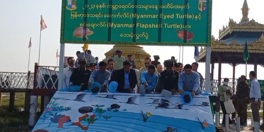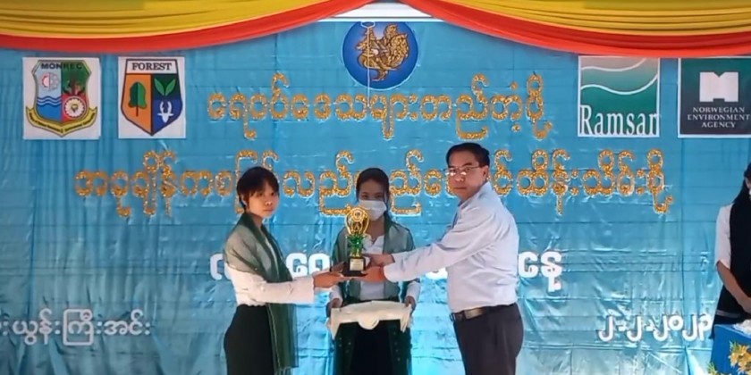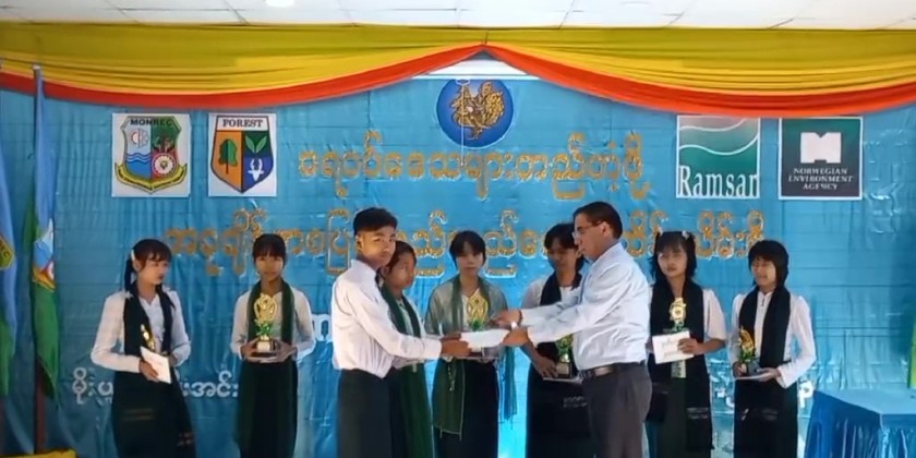The chief Minister and officials then presented prizes to the students who won in essay and painting competition in commemoration of the World Wetlands Day. Later, they viewed around Moe Yun Gyi lake by motorized boats and released reptiles into the lake.