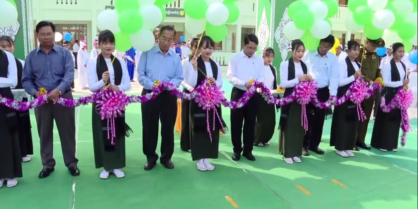 They also took a tour of the commemorative exhibition. In the afternoon, the Executive Chief and party attended the opening ceremony of new school building at Lawdhamma Basic Education Branch High School.
