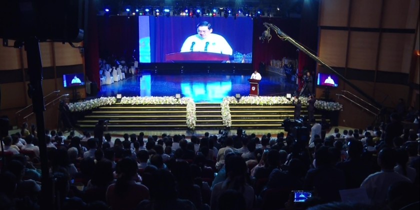 The celebration commenced with the display of LED Animation, followed by performance of the MRTV staff. Then, the Prime Minister unveiled the launching of three new private channels of Uni TV HD Channel, SNDSY Entertainment HD Channel and Channel 24 as well as a new private service of Softtech-DTH platform.