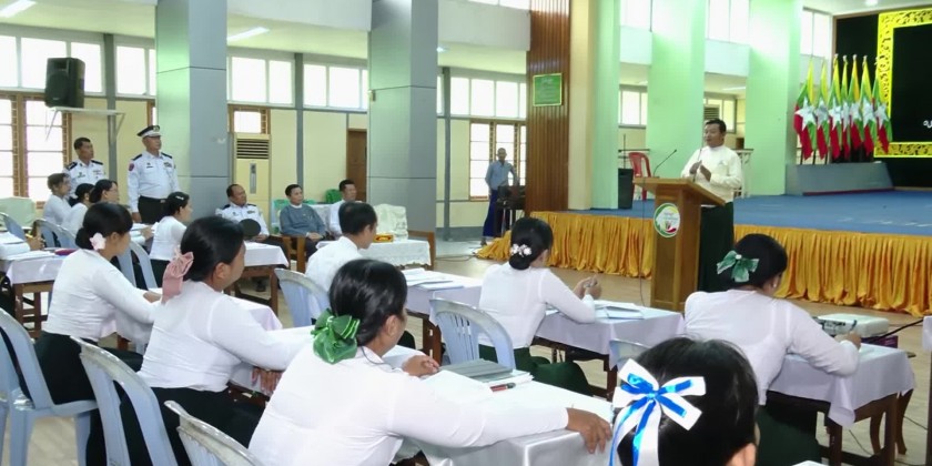 At district-level training course on census opened at the hall of the No.1 Basic Education High School (Pathein), the Union Minister and party oversaw the conducting of training course and coordinated the requirement.