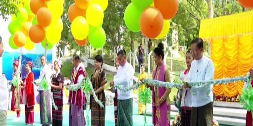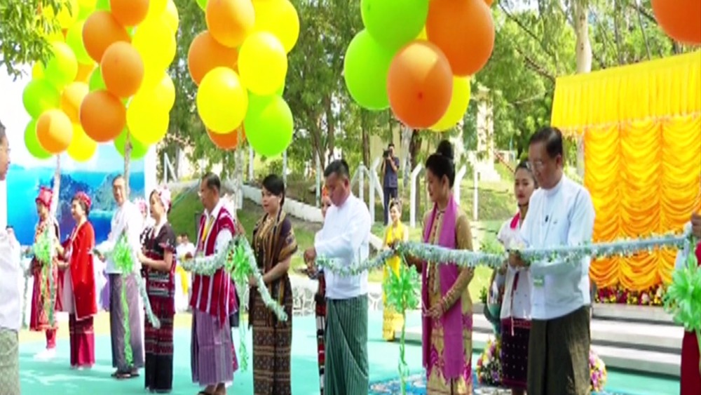 First, the SAC Council Joint-Secretary Lt-Gen Ye Win Oo, council member Mann Nyein Maung, Deputy Prime Minister Union Minister for Planning And Finance U Win Shein, Union Minister U Khin Maung Yi and Union Minister Dr. Nyunt Pe opened the celebration of centenary forestry by cutting the ceremonial ribbon.