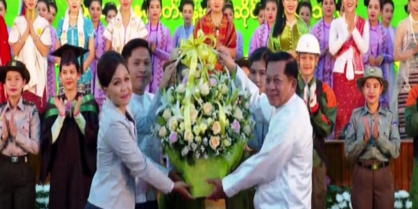 Afterward, the SAC Chairman Prime Minister and attendees enjoyed the songs and performances and the artistes and students were honored with flower basket. Then, the SAC Chairman and attendees posed for documentary photo.