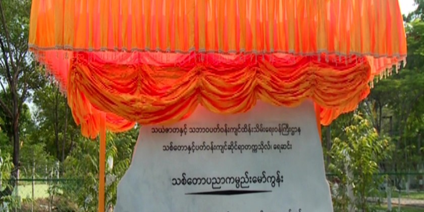 Next, the SAC Chairman Prime Minister Senior General Min Aung Hlaing unveiled the inscription commemorated centenary forestry by pressing the auto button and sprinkled with scented water.